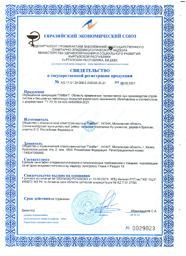 Свойства желтого окрашенное связующее «Гамбит» для спрей-покрытия:Связующее легко наносится вручную, при помощи инструмента. После отверждения получается ровный окрас бесшовного покрытия с увеличенной светостойкостью. У состава высокие декоративные свойства. Использовать полимерный компонент можно для наружных, внутренних работ.